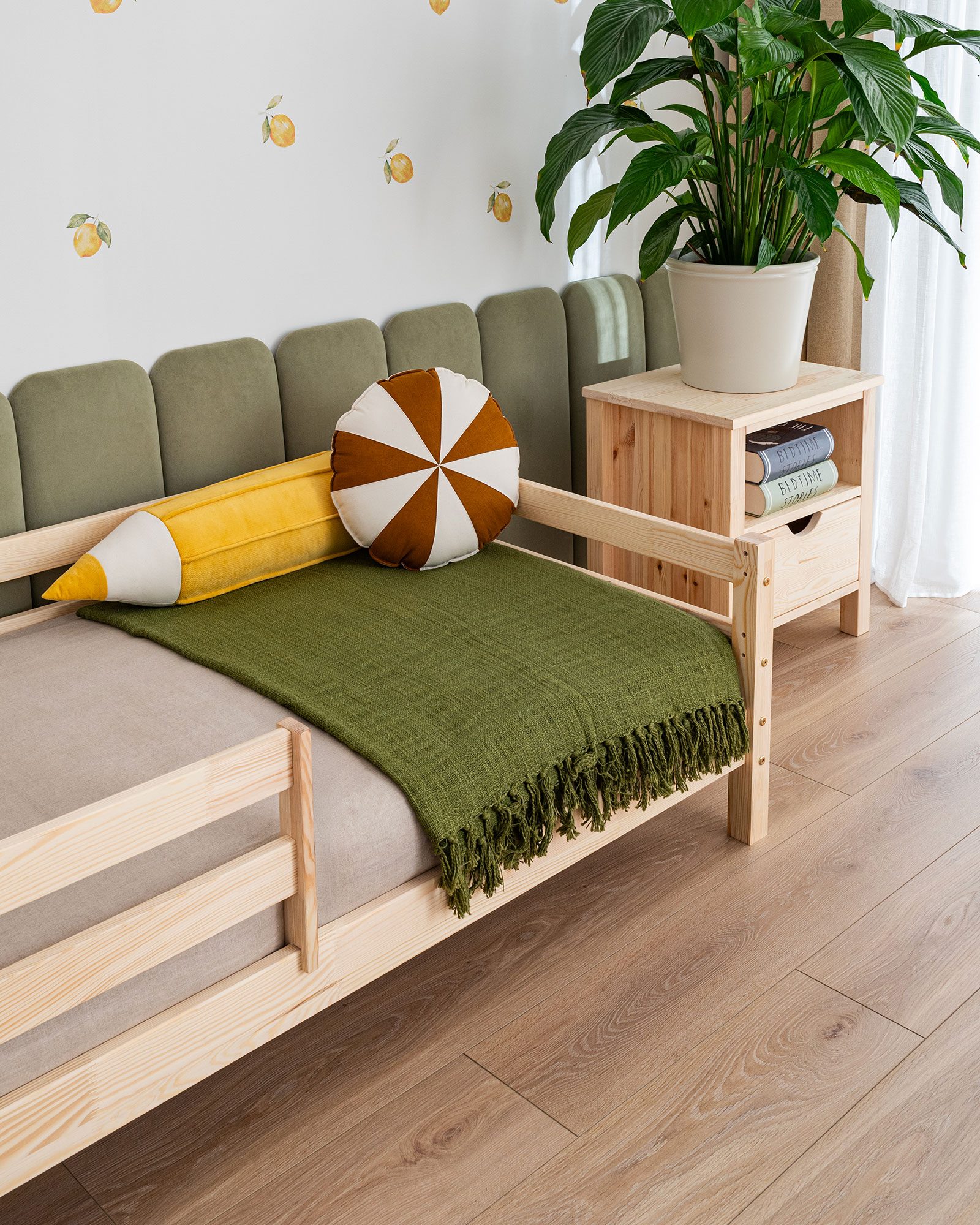 Questo letto in legno naturale porta con sé semplicità, stabilità e davvero molta gioia. È resistente e offre quindi sicurezza e comfort, mentre la calda sfumatura del legno si adatta a qualsiasi cameretta dei bambini. Perfetto per i piccoli esploratori che cercano sicurezza e un nido accogliente dove dormire.